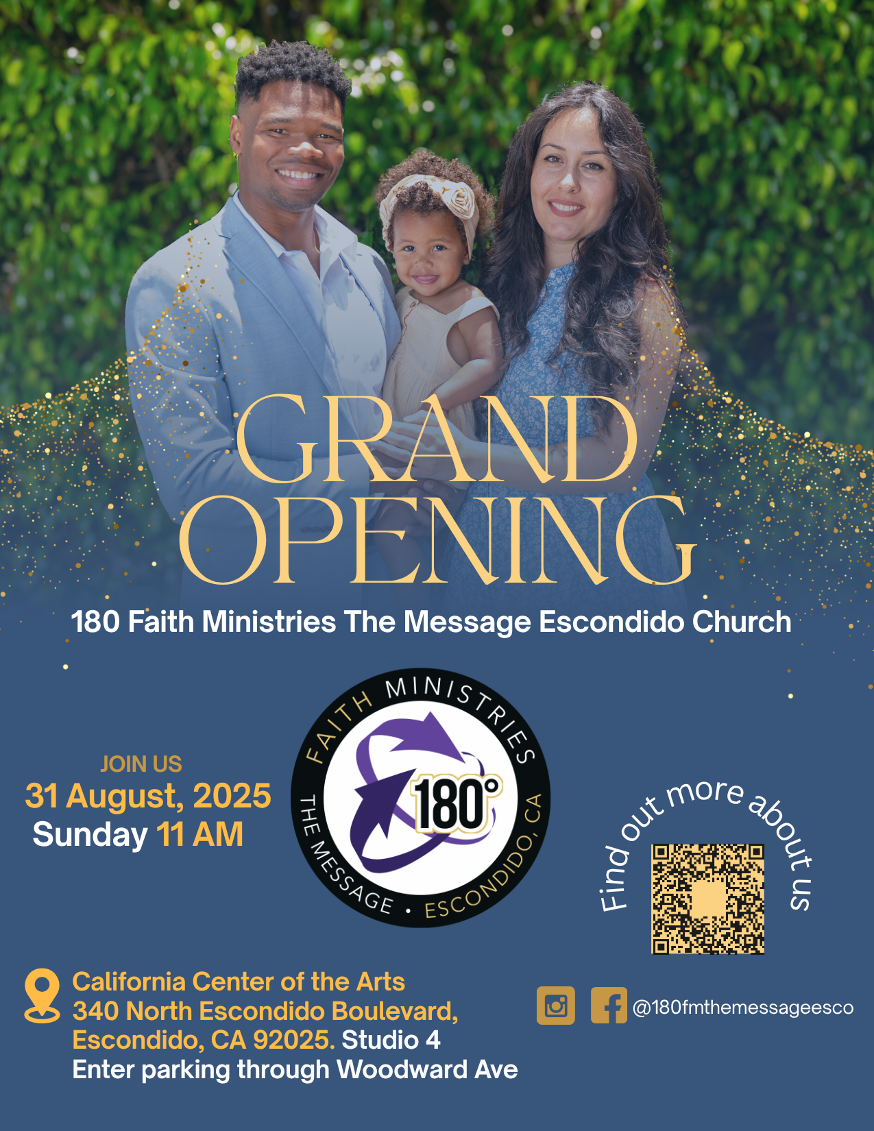 Though we’re just starting out, our heart is to grow a community grounded in love, joy, and faith. Our vision is to create a Christ-centered fellowship that reflects the diversity of Escondido—a city rich with various cultures, former service members, and professionals from many backgrounds.